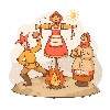 На спортивной площадке развернулось настоящее театрализованное представление. Звучали задорные русские народные песни и частушки в исполнении школьного хора. Скоморохи и ряженые (роли которых блестяще исполнили ученики старших классов) зазывали всех в хоровод.